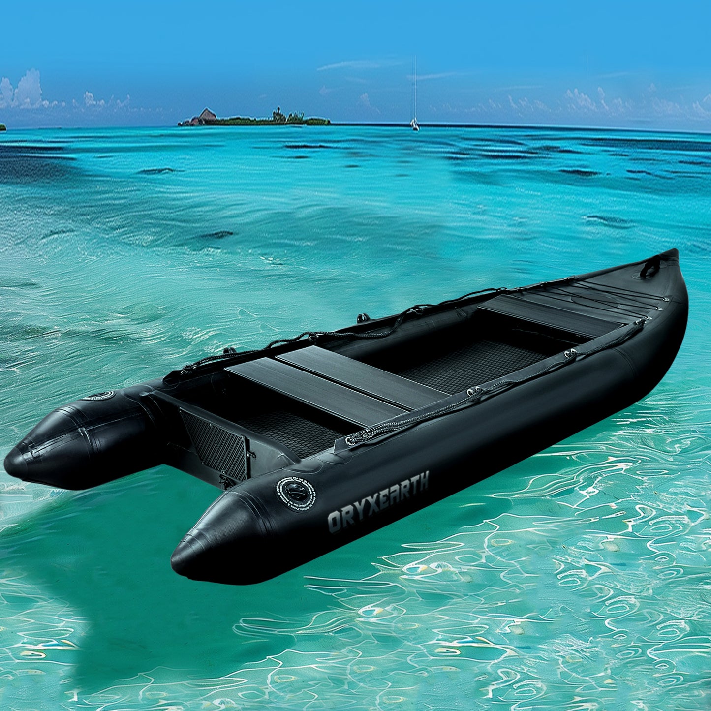 Professional 10.8ft Inflatable Fishing Boat for Adults - Heavy Duty Pontoon Skiff with Aluminum Seat, Includes Pump, Oars & Stabilizer Fin