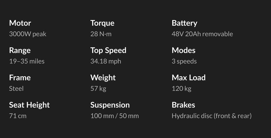 Top speed can be affected by various factors such as road conditions, rider weight, and more. In our tests, the maximum speed reached was 28 mph.