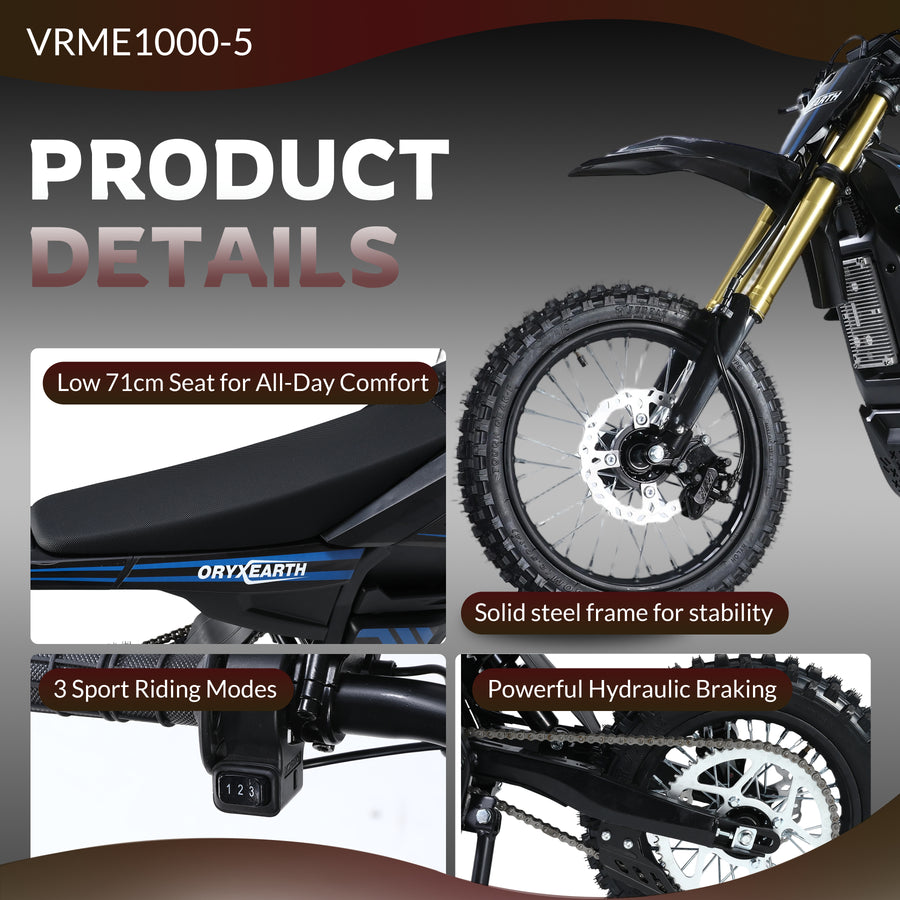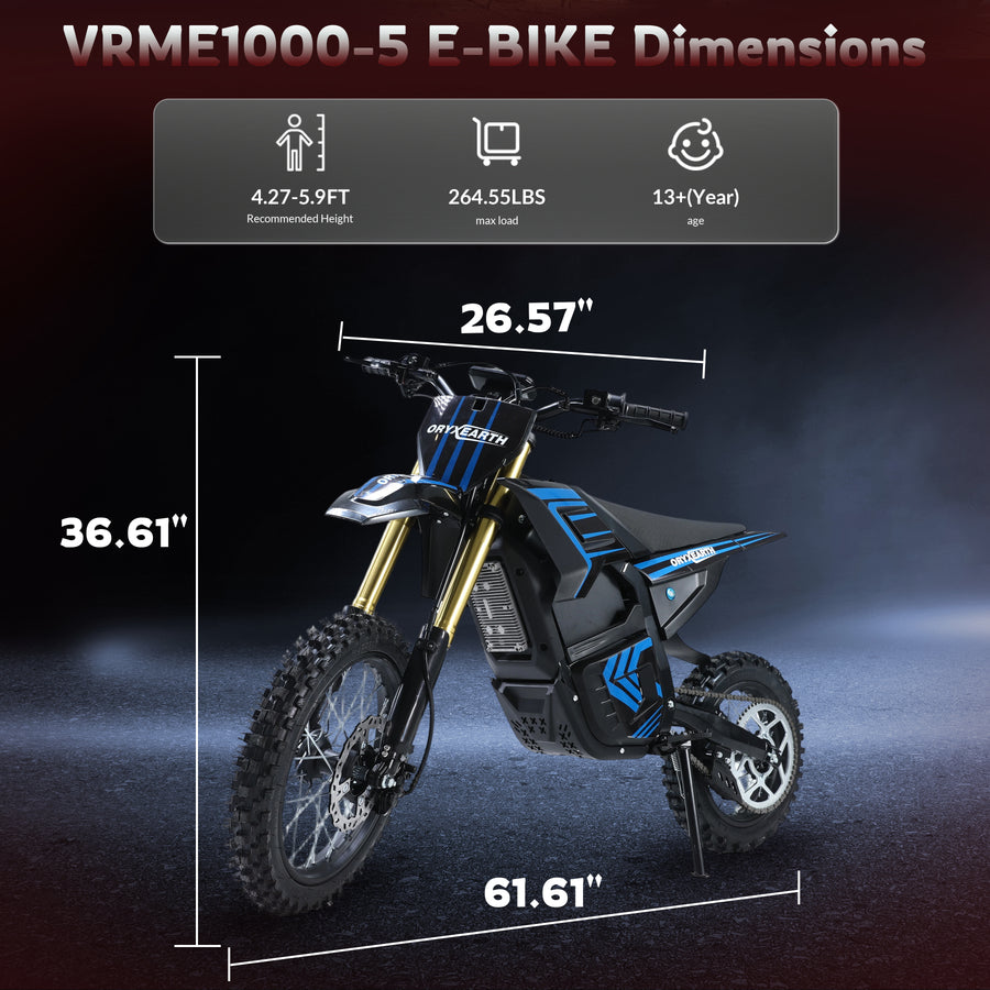 Oryxearth VRME1000-5 Lightweight Off-Road Electric Dirt Bike, For Teens & Adults